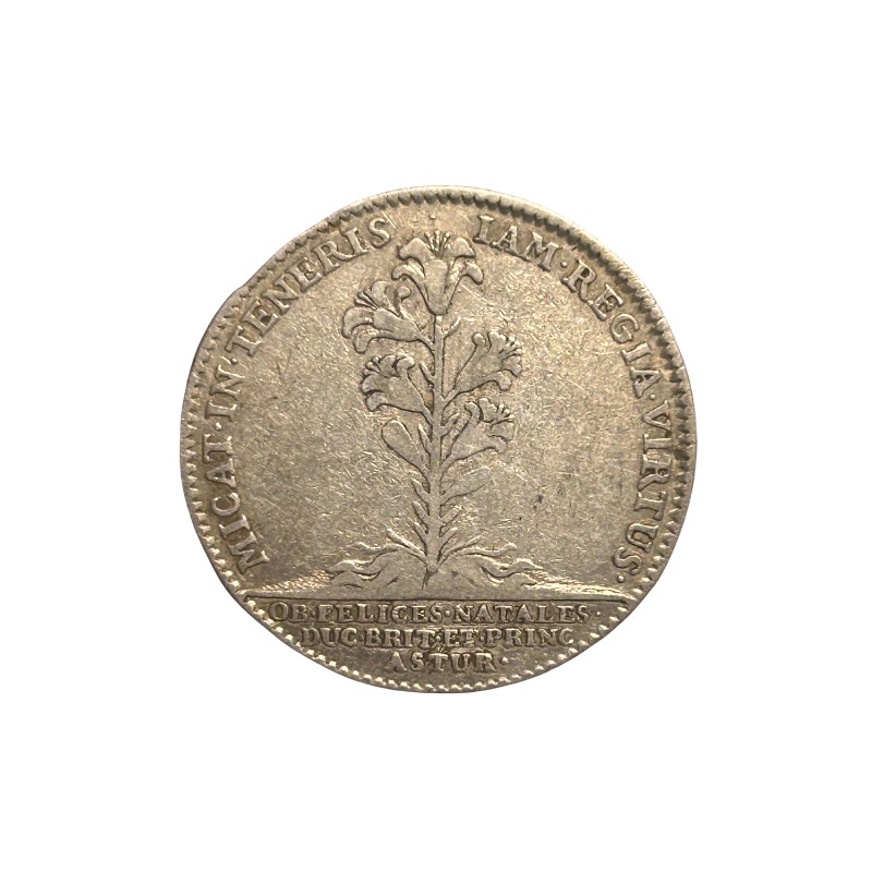 Note: Jeton à teneur historique importante puisqu'il honore la descendance du Roi, née un an plus tôt (1707). il s'agit de Louis de France, duc de Bretagne et de Louis Ier, prince des Asturies.