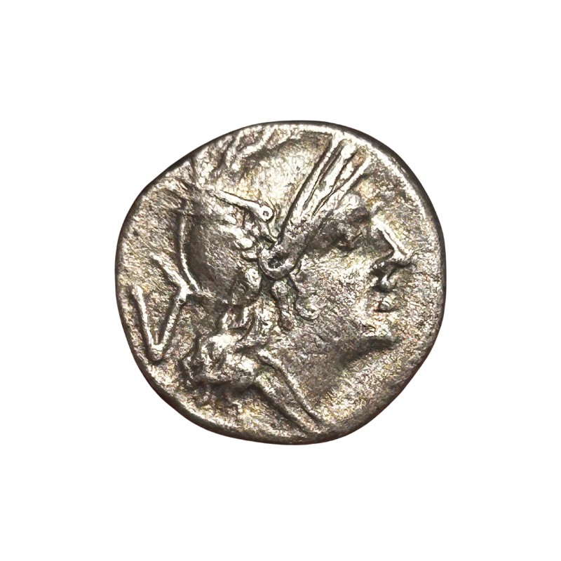 Avers: Tête casquée de Roma à droite, "V" derrière la tête.